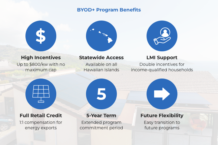 The new BYOD+ program represents an unprecedented opportunity to transition to clean energy while significantly reducing costs. By combining quadrupled incentives, retail-rate export compensation, and special provisions for LMI households, Hawaiian Electric has created a program that truly makes solar accessible for more Hawaii residents.